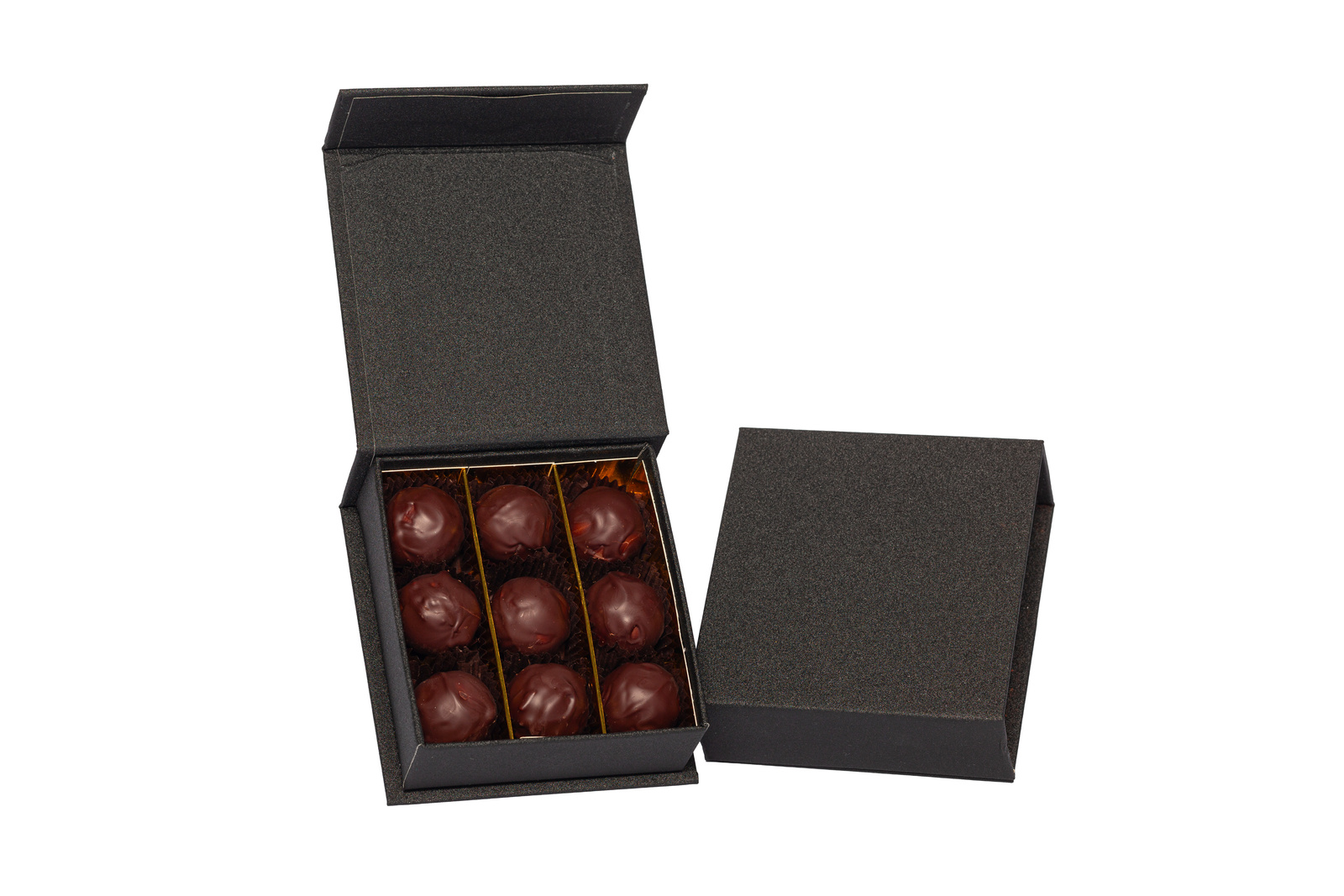 Ich nadzienie z ciemnej czekolady z regionu São Tomé, słynącego z wyjątkowych ziaren kakaowca odmiany Amelonado (Forastero), nadaje truflom bogaty, intensywny aromat i głębię smaku, którą docenią najbardziej wymagający miłośnicy czekolady.