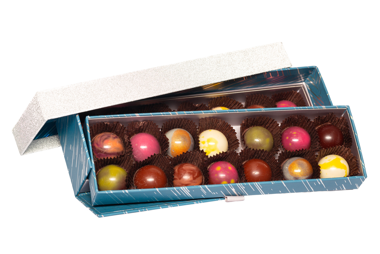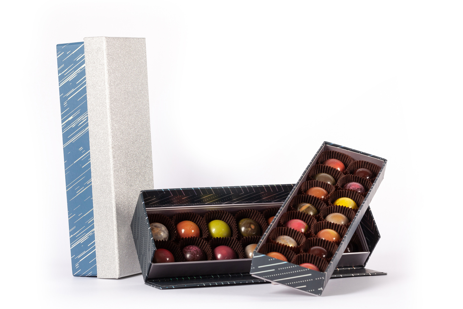 - „Świąteczny Blask” to elegancki zestaw 28 ręcznie robionych pralin premium z belgijskiej czekolady. Wyjątkowe smaki, naturalne składniki i luksusowe opakowanie sprawiają, że to idealne czekoladki na prezent świąteczny dla bliskich lub kontrahentów.