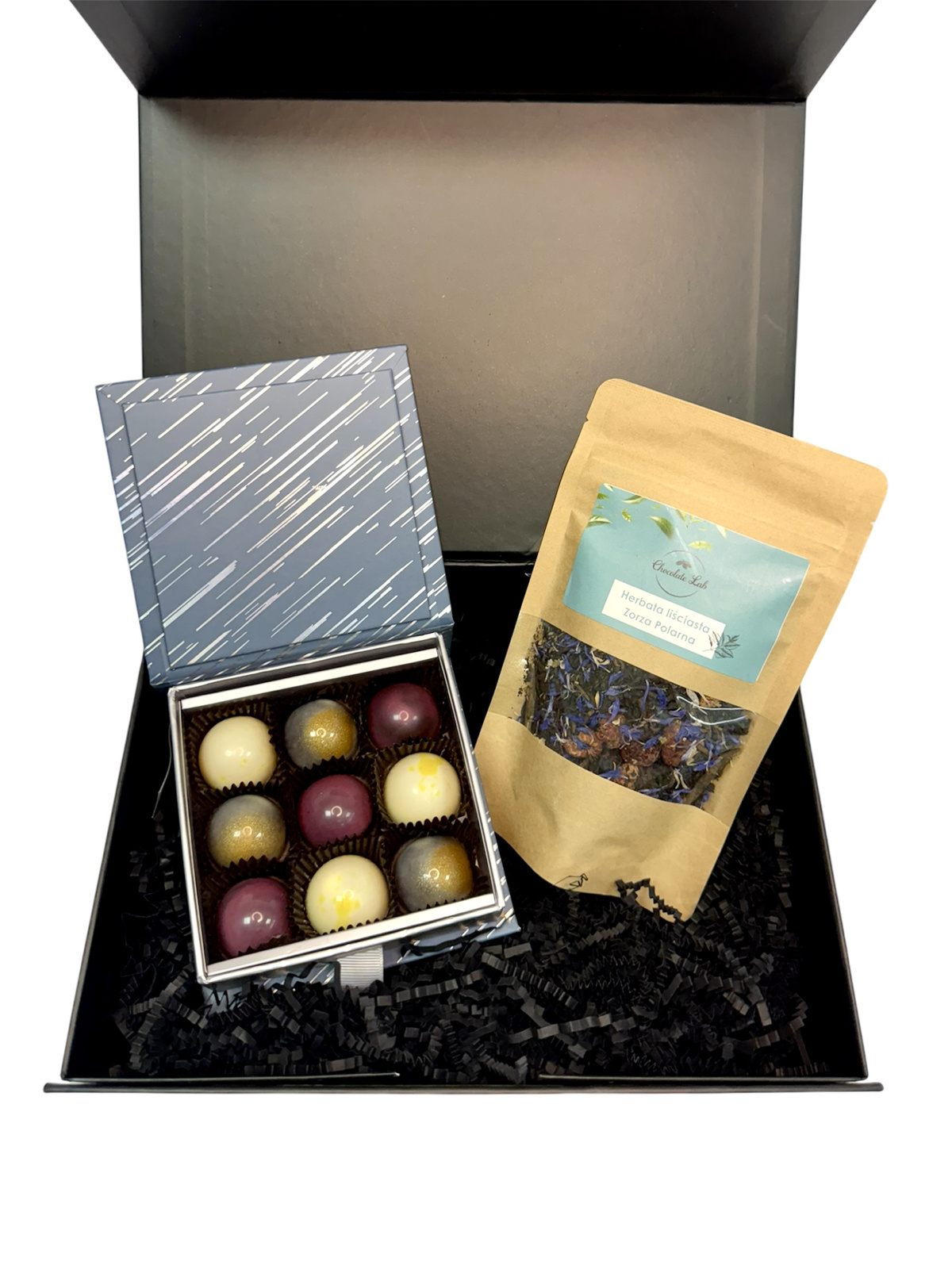 - Zanurz się w wyjątkowym świecie aromatów i smaków. Ręcznie robione praliny w połączeniu z aromatyczną herbatą Zorza Polarna tworzą elegancki prezent, który zachwyca od pierwszego spojrzenia i pierwszego łyku.